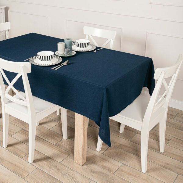 Obrus wodoodporny ARUBA o wymiarach 130×180 cm w granatowym kolorze to gustowna propozycja do jadalni i salonu. Dzięki eleganckiemu wyglądowi sprawdzi się zarówno podczas codziennych posiłków, jak i odświętnych spotkań.