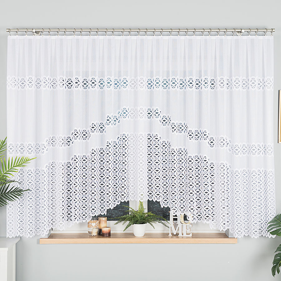 Firanka ADRIANNA w większym formacie to idealne rozwiązanie dla osób poszukujących funkcjonalnej, a zarazem eleganckiej dekoracji okiennej.