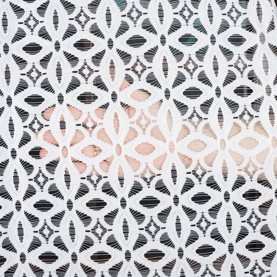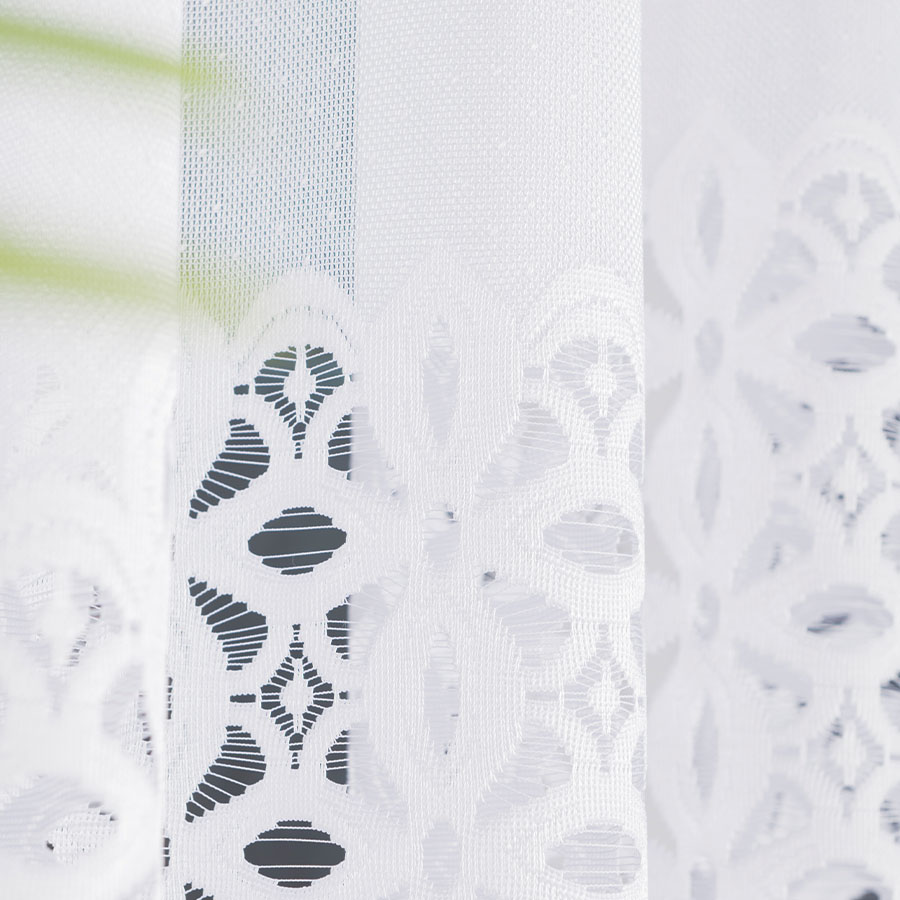 Firanka ADRIANNA 400×160 cm w białym kolorze to gotowa firanka żakardowa z eleganckim wzorem, idealna do szerszych okien w salonie, sypialni i jadalni.