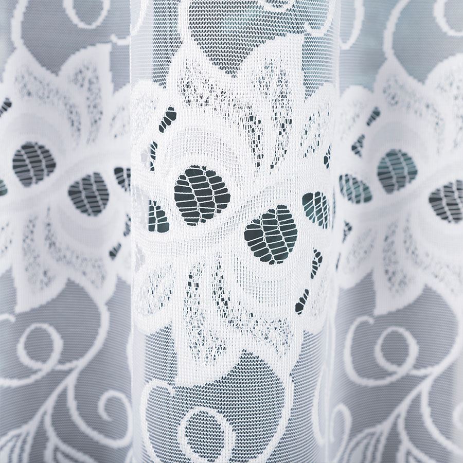 Firanka BASTIA z białego żakardu o szerokości 500 cm to elegancka i praktyczna dekoracja do dużych okien. Lekki materiał i delikatny wzór tworzą jasną i przytulną atmosferę.