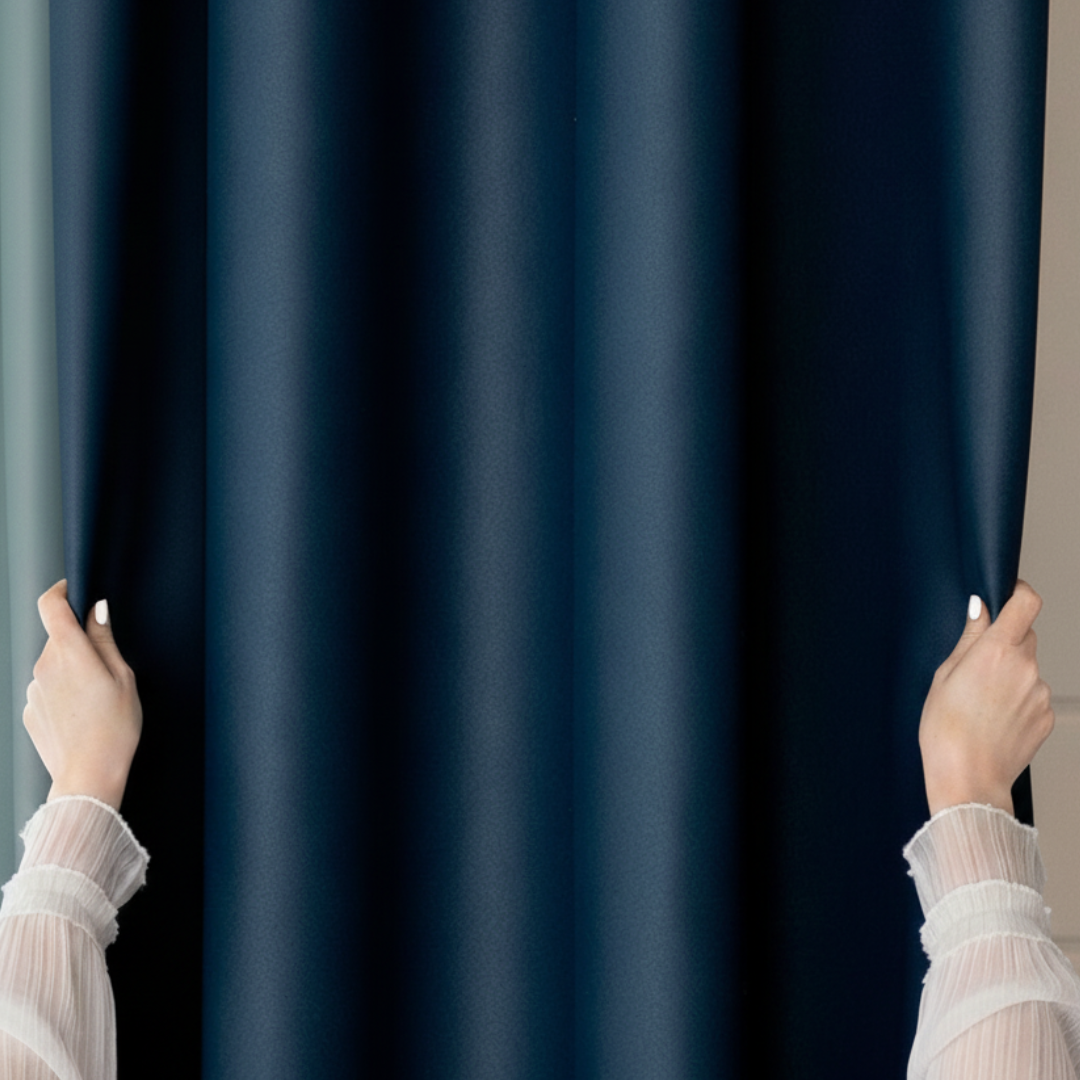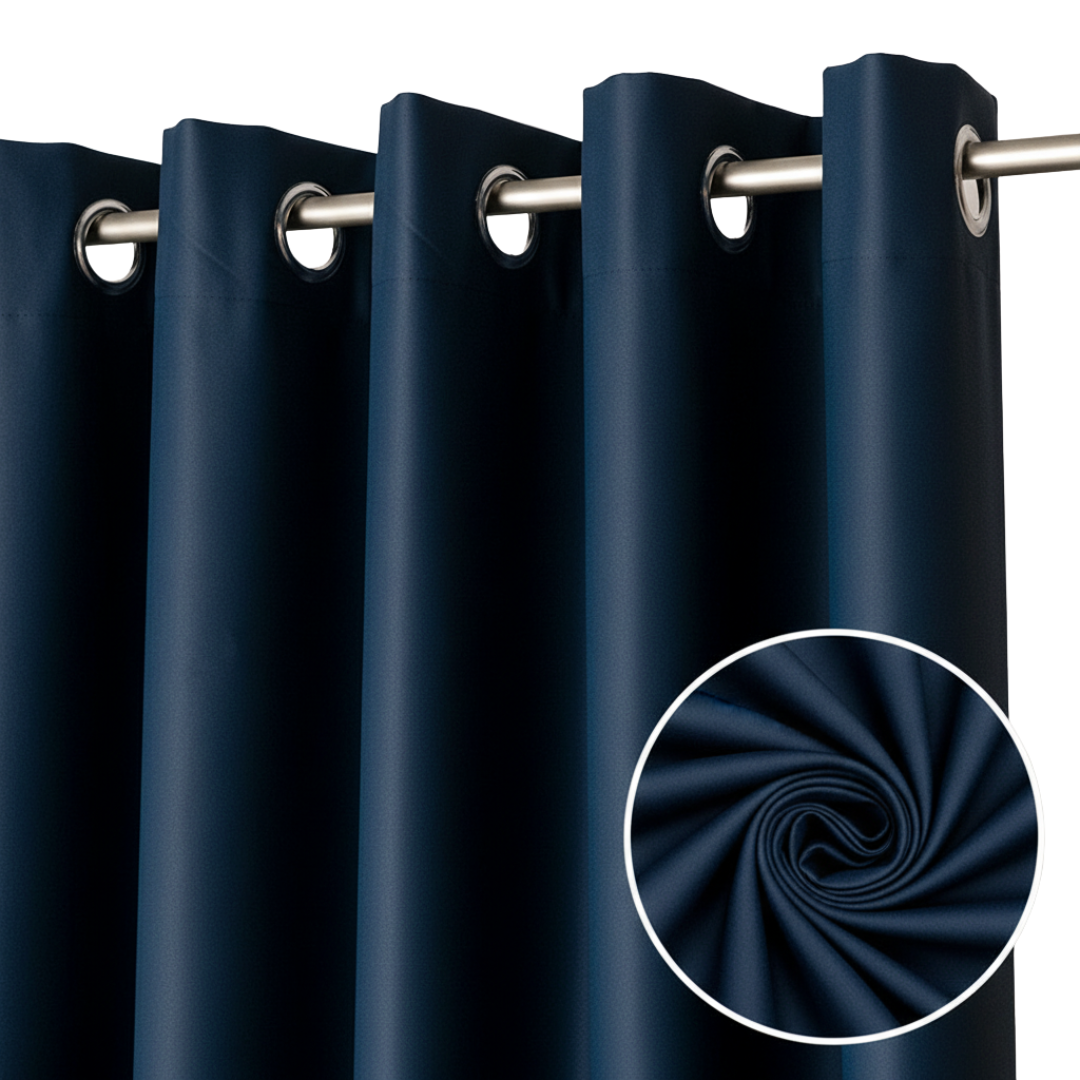 Nowoczesna zasłona blackout 140×250 cm w kolorze granatowym, wykonana z matowej, aksamitnej tkaniny. Skutecznie zaciemnia do 90%, zapewnia prywatność i elegancki wygląd wnętrza.
