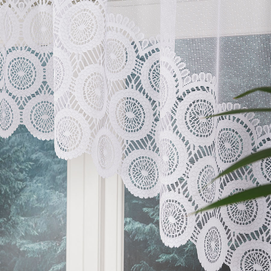 Firanka MALWINA w niskiej wersji to praktyczny wybór dla osób szukających lekkiej dekoracji, która nie zasłania zbyt wiele światła, a jednocześnie dodaje wnętrzu eleganckiego akcentu.