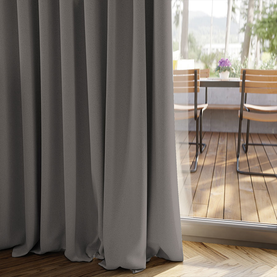 Zasłona SUPER BLACKOUT w eleganckim, neutralnym odcieniu szarości to doskonałe rozwiązanie do wnętrz, w których ważna jest pełna ochrona przed światłem – np. w sypialniach, pokojach dziecięcych, gabinetach czy salach konferencyjnych.