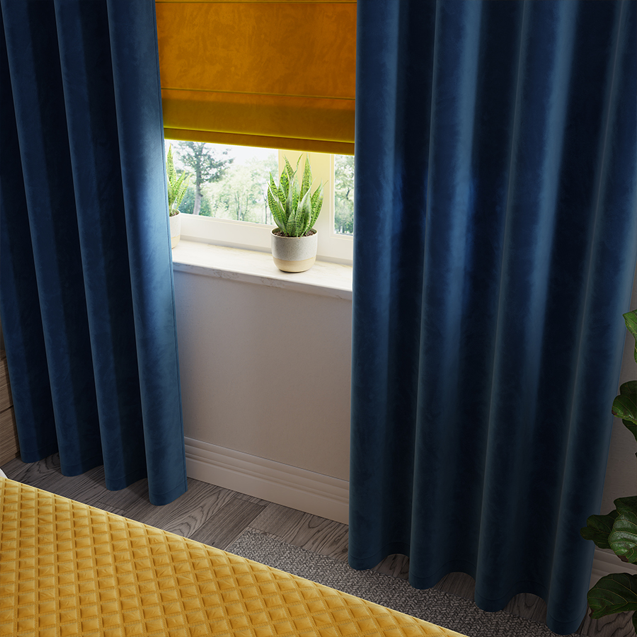 Zasłona VELVI w granatowym kolorze to idealny wybór dla osób poszukujących dekoracji w nasyconym kolorze, który doda wnętrzu przytulności.