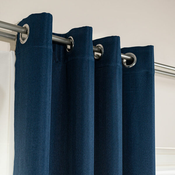 Zasłona JODEŁKA na przelotkach o wymiarach 140×250 cm w niebieskim kolorze z subtelnym wzorem jodełki. Stylowa i uniwersalna dekoracja do wnętrz.