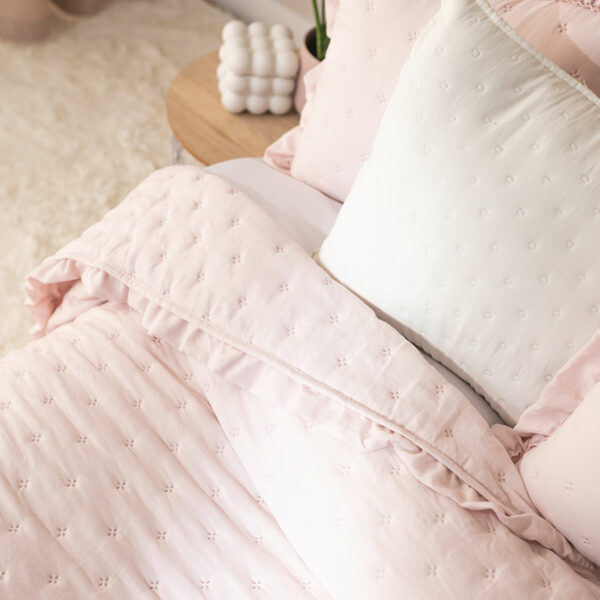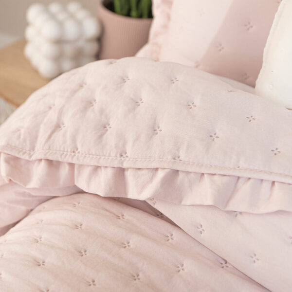 Romantyczna narzuta na łóżko 170×210 z falbanką. Miękka, elegancka i praktyczna – idealna do sypialni w stylu boho lub rustykalnym.