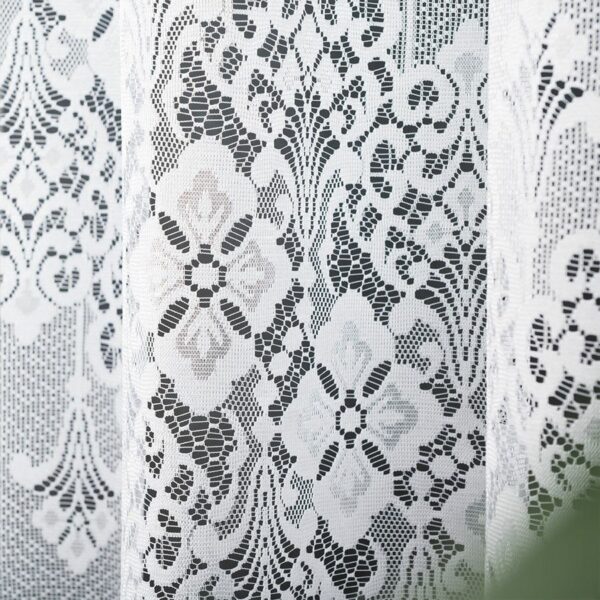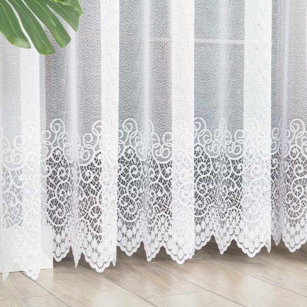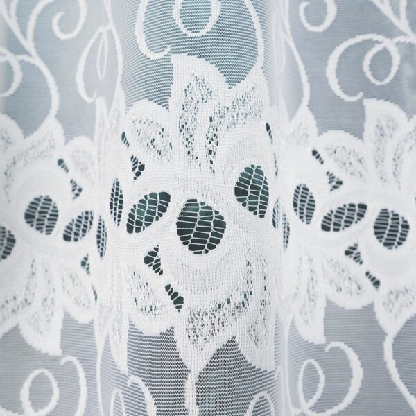 Firanka NADIA 300×160 cm w białym kolorze to gotowa firanka żakardowa z delikatnym wzorem, idealna do salonu, sypialni i jadalni.
