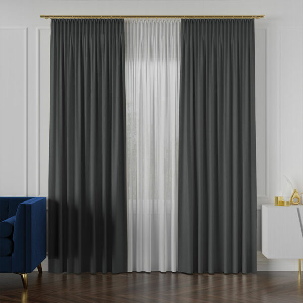 LUKRECJA to tkanina dekoracyjna o wysokości 310 cm w kolorze 034 grafitowym, która sprawdzi się doskonale na zasłony, firany, rolety rzymskie czy dekoracyjne panele okienne. Materiał jest lekki, zwiewny i elegancki – idealny do wnętrz nowoczesnych, minimalistycznych oraz industrialnych.